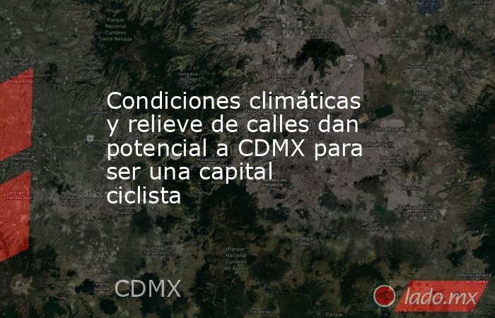 De acuerdo con el diagnóstico elaborado en 2018 para el Plan Bici CDMX, la actualización del documento rector de la política ciclista de la capital, 65% del área urbana se localiza en zonas “planas”, con pendientes menores a seis grados, ideales para pedalear. Las alcaldías Azcapotzalco, Benito Juárez, Cuauhtémoc, Iztacalco, Coyoacán y Venustiano Carranza concentran las zonas más planas, y en ellas también vive la mayor densidad de población. La excepción está al poniente, en Cuajimalpa, partes de Álvaro Obregón y Magdalena Contreras, donde el terreno sube, apunta Manuel Suárez Lastra. Al relieve se suma el clima. La Ciudad de México mantiene una temperatura media anual de entre 15 y 16 grados centígrados, con máximas que en primavera alcanzan los 29 grados. Las lluvias, concentradas entre junio y septiembre, ocurren típicamente por las tardes, lo que las vuelve predecibles para quienes planean sus desplazamientos. En esta temporada lo que cambia no es si la gente pedalea, sino a qué hora lo hace, de acuerdo con el experto Suárez Lastra.