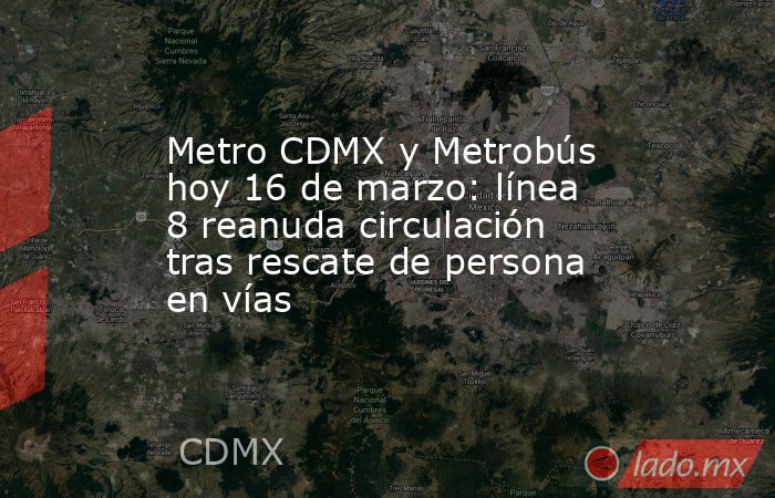 Metro CDMX y Metrobús hoy 16 de marzo: línea 8 reanuda circulación tras rescate de persona en vías. Noticias en tiempo real 16 de Marzo, 2026 15:00