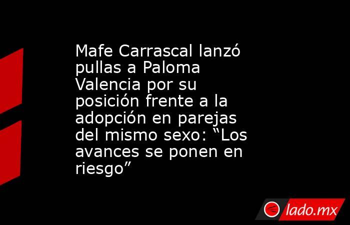 La congresista del Pacto Histórico, Mafe Carrascal, advirtió sobre el posible riesgo de retrocesos en materia de derechos adquiridos por la comunidad Lgbtiq+ en Colombia, tras reciente entrevista de la candidata presidencial del Centro Democrático, Paloma Valencia, en la revista Cambio sobre la adopción en parejas del mismo sexo.