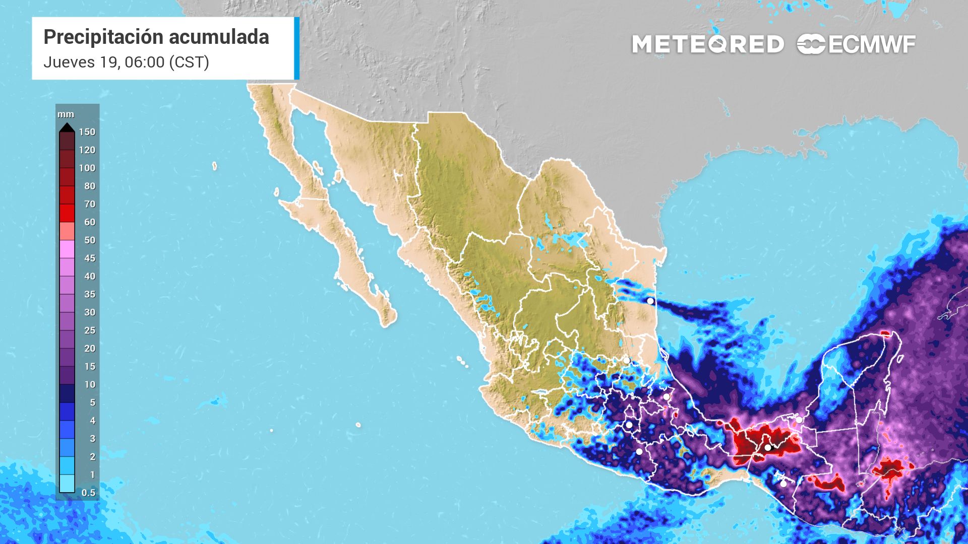 Las condiciones favorables para la precipitación están dadas por la combinación de varios fenómenos meteorológicos, como la presencia del frente frío 41 moviéndose sobre los estados localizados en el Golfo de México, una vaguada en la altura y la corriente en chorro subtropical, así como condiciones locales.