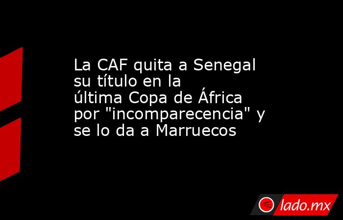 La Confederación Africana de Fútbol (CAF), a través de su Junta de Apelación, ha declarado este martes a la selección masculina de Senegal "culpable de perder por incomparecencia" la final de la última Copa de África, que se disputó el pasado 18 de enero, por haberse marchado del campo y amagar con no volver, en señal de protesta tras un penalti.