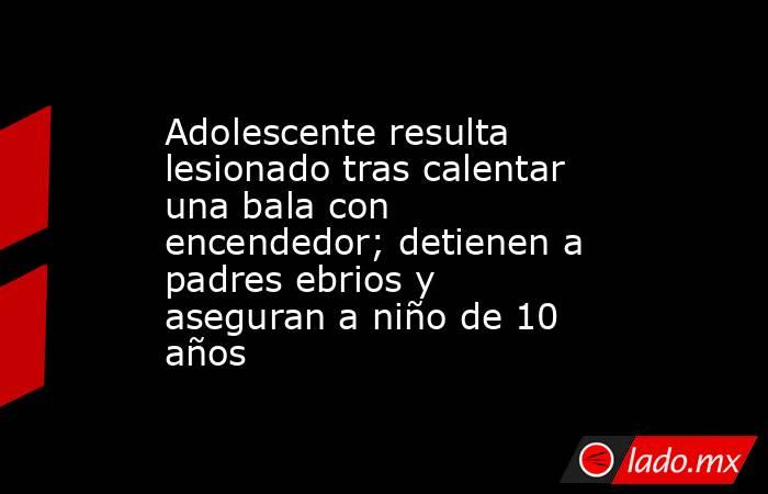 Un adolescente de 14 años de edad resultó con una lesión en una ceja, luego de que al ver discutir a sus padres en estado de ebriedad, les dijera que había conseguido balas, sacó una de ellas y comenzó a calentarla con un encendedor, luego se activó, logrando lesionarlo en la cara.