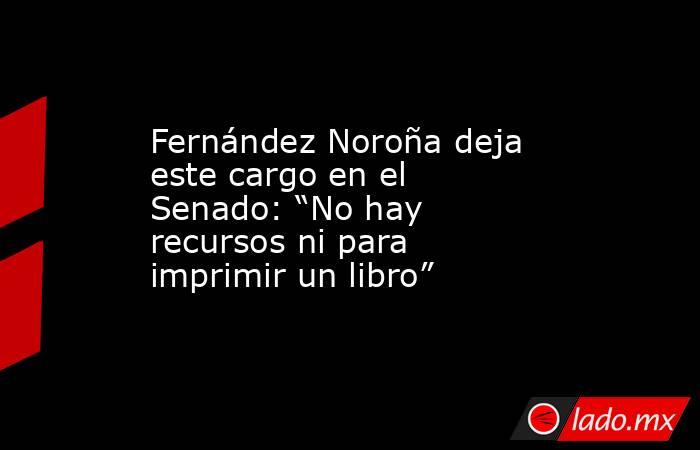 Añadió que mantener la responsabilidad sin recursos ni funciones operativas resulta poco viable. Incluso consideró que, en estas condiciones, es probable que el Senado no produzca libros durante la actual legislatura.