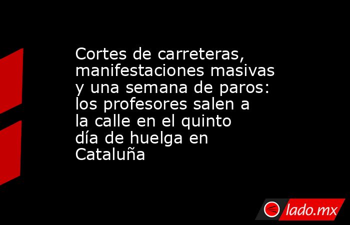 Al igual que el resto de días, esta quinta jornada ha comenzado con cortes de carreteras por parte de los docentes, que con sus piquetes han evitado los accesos a Barcelona. Las afectaciones se han producido en puntos como la A-2 entre Abrera y Esparraguera, la C-55 en Abrera (Barcelona), cuatro tramos de la Ronda de Dalt de Barcelona, la AP-7 en Cerdanyola del Vallès (Barcelona) o la avenida Diagonal de Barcelona en ambos sentidos a la altura de la Zona Universitaria.