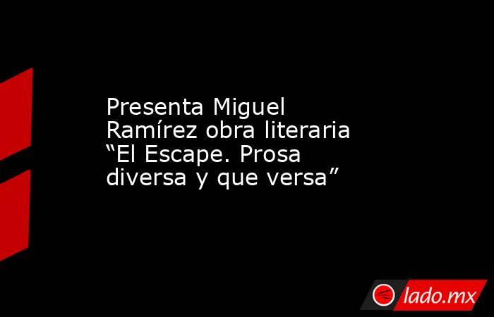 El escritor chihuahuense, Miguel Ramírez Ochoa presentó su libro “El Escape. Prosa diversa y que versa”; obra literaria que contiene géneros híbridos y a partir de esta semana ya estará a la venta en la librería Kosmos de la ciudad de Chihuahua.