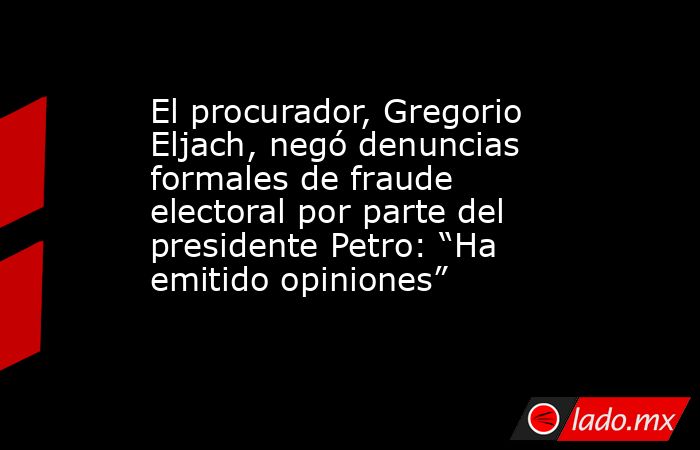 El procurador general, Gregorio Eljach, afirmó el viernes 20 de marzo en Barranquilla que el presidente Gustavo Petro no ha presentado denuncias formales sobre fraude electoral, sino que solo ha dado opiniones personales sobre el proceso electoral en curso.