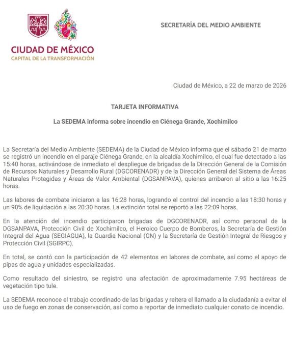 La SEDEMA reconoció públicamente el trabajo articulado de todas las brigadas participantes y aprovechó el incidente para lanzar un llamado directo a la ciudadanía: evitar el uso de fuego en zonas de conservación y reportar de forma inmediata cualquier conato de incendio a las autoridades competentes.
