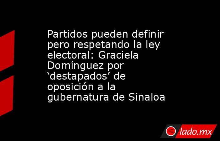 Culiacán, Sin. – Ante los ‘destapes’ anticipados para buscar encabezar las candidaturas al gobierno del estado de Sinaloa, de parte de los partidos de oposición y de los de alianza a Morena, se deben de respetar los tiempos electorales pero cada institución puede ir perfilando a sus representantes, reconoció Graciela Domínguez Nava.