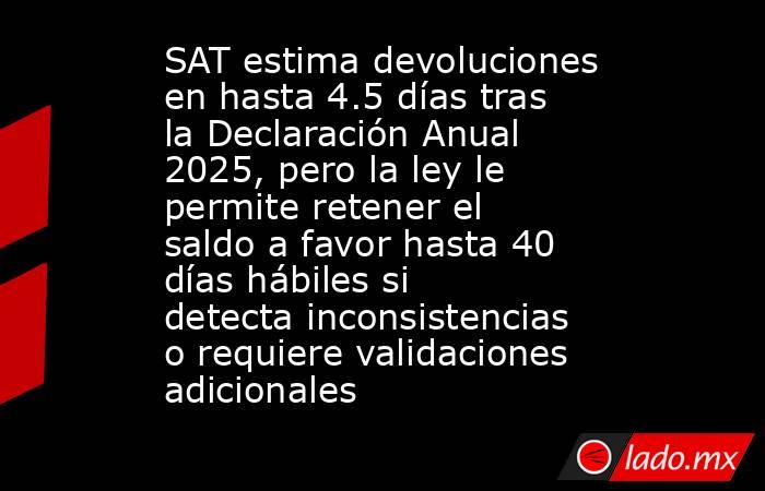 El Servicio de Administración Tributaria (SAT) informó que las devoluciones automáticas de impuestos derivadas de la Declaración Anual 2025 pueden realizarse en un promedio de 4.5 días hábiles cuando no existen inconsistencias en la información presentada.