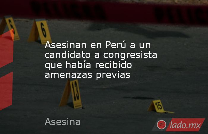Lima, 25 mar (EFE).- El candidato a congresista Gilbert Infante, del partido Fe en el Perú, fue asesinado la noche del martes, según anunció este miércoles el candidato presidencial de dicha formación, Álvaro Paz de la Barra, quien dijo que la víctima había recibido amenazas.