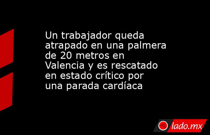 Un trabajador de 41 años, que se había quedado atrapado a unos 20 metros de altura en una palmera mientras realizaba labores de poda, fue evacuado en estado crítico al Hospital La Fe en Valencia. Durante el rescate, el operario sufrió una parada cardiorrespiratoria que obligó a los Bomberos de Valencia a practicar maniobras de reanimación avanzadas. Además, un bombero de 36 años quedó atrapado y sufrió una caída, por lo que fue trasladado al Hospital General de Valencia por dolor lumbar.
