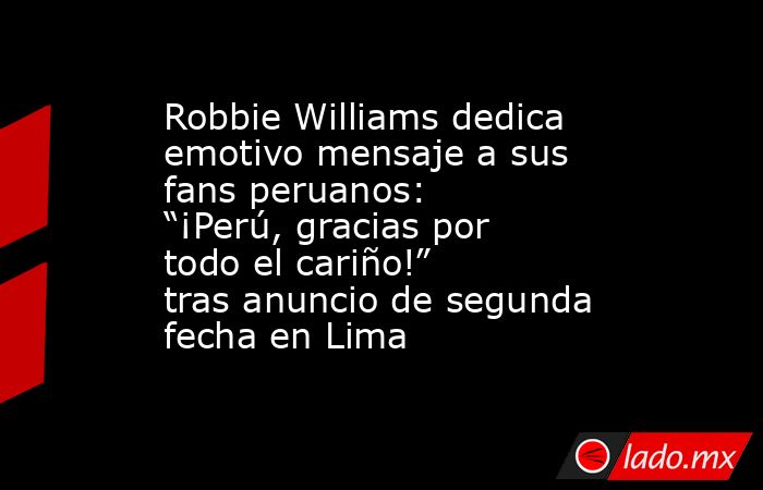 La expectativa por la llegada de Robbie Williams a Lima ha desbordado todas las previsiones. El cantante británico, una de las figuras más influyentes y queridas del pop mundial, se presentará por primera vez en Perú con dos conciertos consecutivos en el Arena 1 Park de la Costa Verde, en San Miguel, programados para el miércoles 23 y el jueves 24 de septiembre.