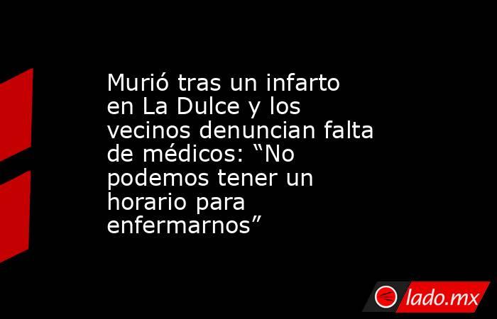 Murió tras un infarto en La Dulce y los vecinos denuncian falta de médicos: “No podemos tener un horario para enfermarnos”