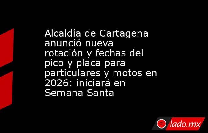 La Alcaldía Mayor de Cartagena, a través del Departamento Administrativo de Tránsito y Transporte (Datt), anunció la nueva rotación del pico y placa para vehículos particulares y motocicletas, establecida en el Decreto 0015 del 14 de enero de 2026.