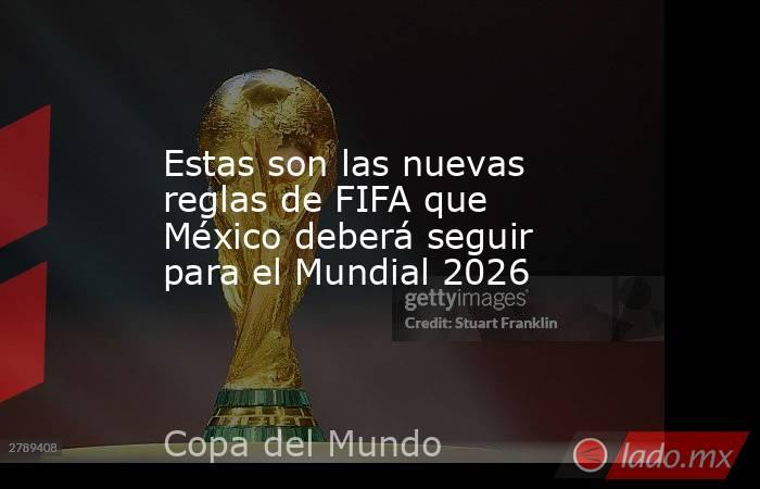 La FIFA ha aprobado un conjunto de nuevas reglas que modificarán el desarrollo de la Copa del Mundo 2026, torneo en el que México será uno de los países anfitriones junto a Estados Unidos y Canadá.
