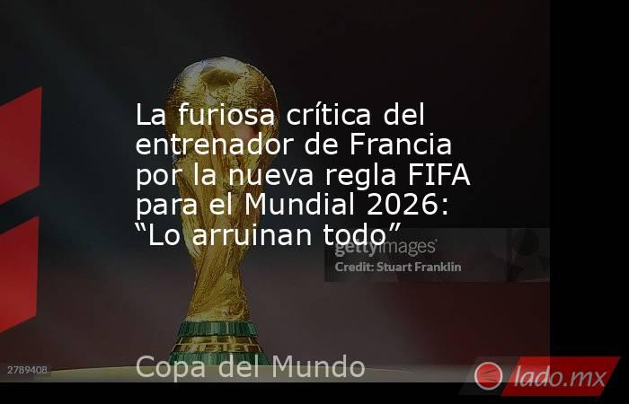 El entrenador de Francia, Didier Deschamps, quien levantó la Copa del Mundo como jugador en 1998 y como técnico en 2018, fue consultado por estos parates forzados, luego de imponerse 2-1 a Brasil en el Gillette Stadium de Massachusetts, en los Estados Unidos. “Está bien para ustedes, los que transmiten, tener una pausa para la publicidad, pero esos tres minutos cambian el fútbol... No importa el equipo, si está en un buen momento, tres minutos lo arruinan todo”, expresó en charla con el canal francés TF1.