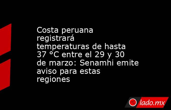 El aviso tendrá vigencia desde el domingo 29 de marzo a las 10:00 horas hasta el lunes 30 de marzo a las 23:59 horas, acumulando un periodo total de 37 horas. Las regiones afectadas incluyen Áncash, Arequipa, Callao, Ica, La Libertad, Lambayeque, Lima, Piura y Tumbes.