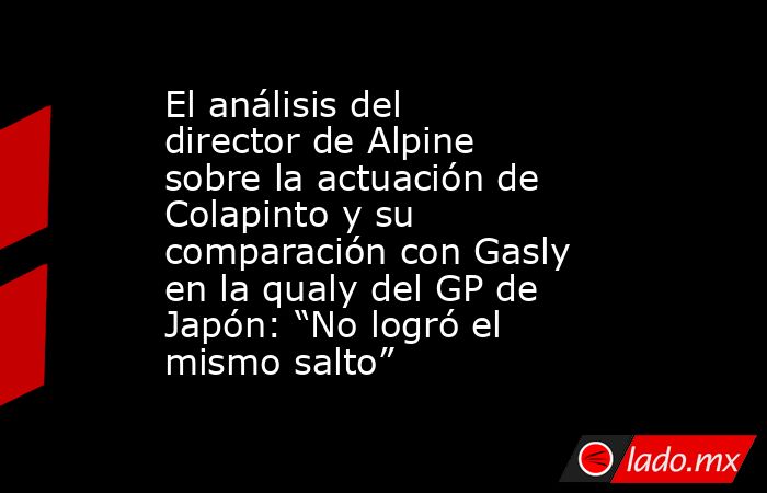 En la misma gacetilla difundida por Alpine, el piloto argentino analizó su actuación en la qualy de Suzuka: “No ha sido el resultado que esperábamos hoy al llegar a la clasificación. En general, este fin de semana nos ha costado mucho encontrar el ritmo con poco combustible. El coche se comporta y rinde mucho mejor con mucho combustible, lo que esperamos que sea un buen augurio para mañana. En la Q1 fue mejor, pero en la Q2 no dimos el paso que necesitábamos para tener opciones de pasar a la Q3. Como vimos con lo que hizo Pierre, no aprovechamos al máximo el potencial del coche. Con estos coches hay que estar en el rango de funcionamiento adecuado en cada pequeño detalle para sacarle el máximo partido, y nosotros no lo estuvimos. Tengo que trabajar con el equipo para entender algunas cosas más y ver cómo podemos mejorar. Es la primera vez que conduzco aquí; es un circuito agradable, pero también muy técnico, así que sin duda hay algunos aspectos en los que aún tenemos que mejorar. Desde ayer, el ritmo de carrera parecía más competitivo, así que, si podemos mantenerlo, esperamos poder abrirnos paso en el Gran Premio de mañana".