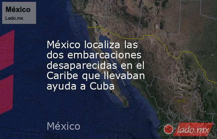 Ciudad de México, 28 mar (EFE).- Una aeronave de la Armada mexicana localizó las dos embarcaciones tipo catamarán que habían desaparecido hace una semana en el Caribe mexicano tras zarpar de Isla Mujeres rumbo a La Habana con ayuda humanitaria, informó este sábado la Secretaría de Marina (Semar) de México.