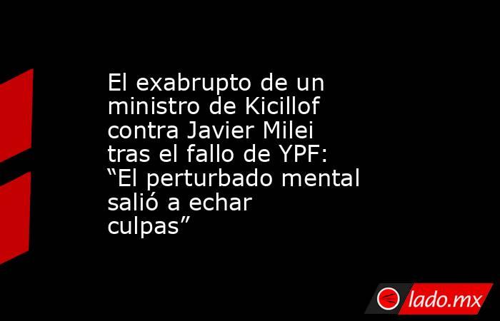 El ministro bonaerense Carlos Bianco, mano derecha de Axel Kicillof, calificó de “perturbado mental” al presidente Javier Milei, luego de que este cuestionara a Cristina Kirchner y al gobernador de Buenos Aires por haber impulsado la nacionalización de YPF en 2012.