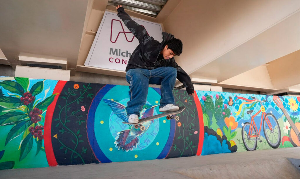 En su bajopuente, el paso vehicular cuenta con 2 mil 627 metros cuadrados de áreas de recreación para el disfrute de las familias uruapenses, con skatepark, gimnasio al aire libre, ciclovía y juegos infantiles, así como cruces seguros, luminarias solares, áreas verdes, banquetas amplias y dos grandes esculturas del artista uruapense Javier Marín.