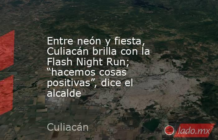 Culiacán, Sinaloa.- En el marco de la carrera Flash Night Run, el alcalde de Culiacán, Juan de Dios Gámez Mendivil celebró que familias enteras se hayan reunido para convivir y demostrar a nivel nacional que en la capital sinaloense se hacen cosas buenas y positivas.