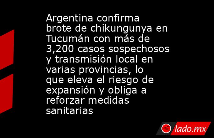 Argentina.- Las autoridades sanitarias encendieron las alertas por el avance del chikungunya en Argentina, luego de que se confirmara un brote epidémico en la capital de Tucumán y un aumento sostenido de casos en varias provincias.