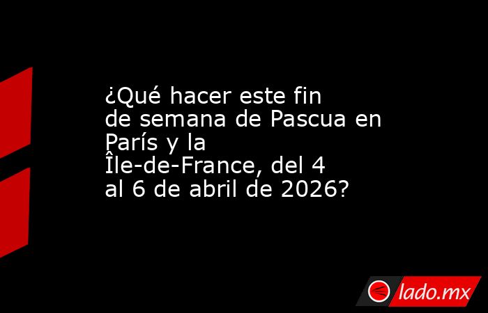 Haz clic aquí para descubrir la lista de posibilidades y de actividades para este fin de semana prolongado del 4, 5 y 6 de abril de 2026 en París y en Île-de-France.