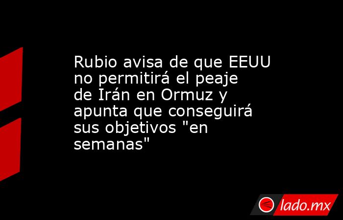 El secretario de Estado estadounidense, Marco Rubio, ha avisado este lunes de que Estados Unidos no permitirá que Irán establezca un peaje al tránsito de buques en el paso de Ormuz y ha apuntado que el Ejército conseguirá los objetivos marcados por el presidente estadounidense, Donald Trump, "en cuestión de semanas y no de meses".