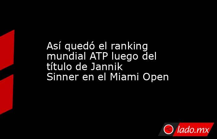 Así quedó el ranking mundial ATP luego del título de Jannik Sinner en el Miami Open ESPNdeportes.com