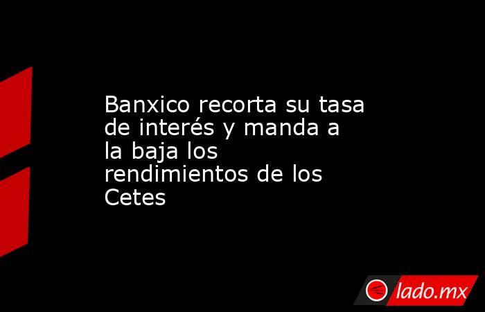 El recorte a la tasa de interés interbancaria por parte del Banco de México ( Banxico ) trae malas noticias para los inversionistas en bonos gubernamentales, pues los rendimientos de los Cetes tuvieron caídas generales , informó el banco central esta lunes.