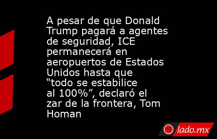 WASHINGTON, Estados Unidos.- El zar fronterizo de la Casa Blanca, Tom Homan, confirmó este lunes que los agentes de Inmigración y Control de Aduanas (ICE) mantendrán su presencia en los aeropuertos del país hasta que las operaciones de la Administración de Seguridad en el Transporte (TSA) regresen a la normalidad.