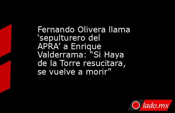 Fiel a su estilo polemista, Olivera dirigió sus dardos hacia la figura de Enrique Valderrama, quien representa el retorno del APRA a la contienda presidencial tras años de ausencia administrativa. Para el candidato del Frente de la Esperanza, Valderrama no representa un renacimiento, sino el final definitivo de la agrupación fundada por Víctor Raúl Haya de la Torre.