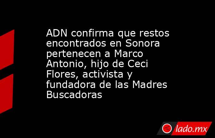 Una prueba de ADN confirmó que los restos óseos encontrados en Hermosillo corresponden a Marco Antonio Sauceda, hijo de Ceci Flores, activista y fundadora del colectivo Madres Buscadoras de Sonora.