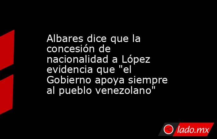 El ministro de Asuntos Exteriores, Unión Europea y Cooperación, José Manuel Albares, ha afirmado que la elevación al Consejo de Ministros de la propuesta de conceder la nacionalidad española al opositor venezolano Leopoldo López evidencia que, "frente a tanta mentira y tanta demagogia que algunos partidos políticos españoles intentan esparcir, este gobierno es el que da apoyo siempre al pueblo hermano de Venezuela".