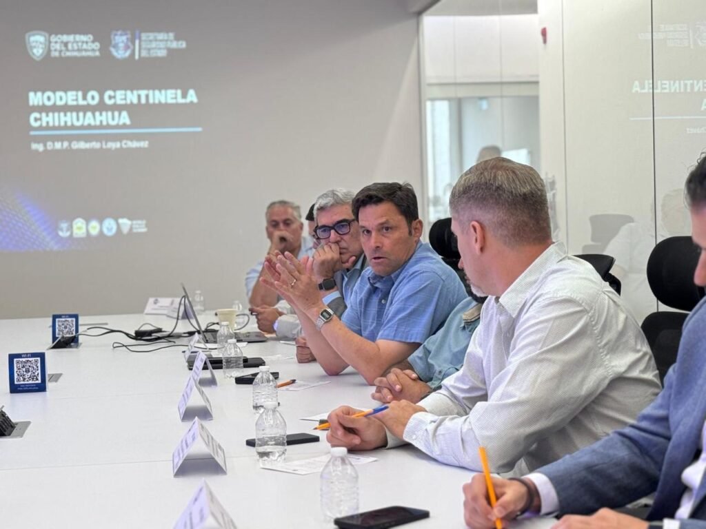 El Secretario de Seguridad Pública del Estado, Gilberto Loya, sostuvo una reunión con integrantes del Clúster Minero de Chihuahua con el objetivo de establecer acuerdos que permitan fortalecer la seguridad en las zonas mineras mediante el uso de tecnología y operativos de patrullaje.