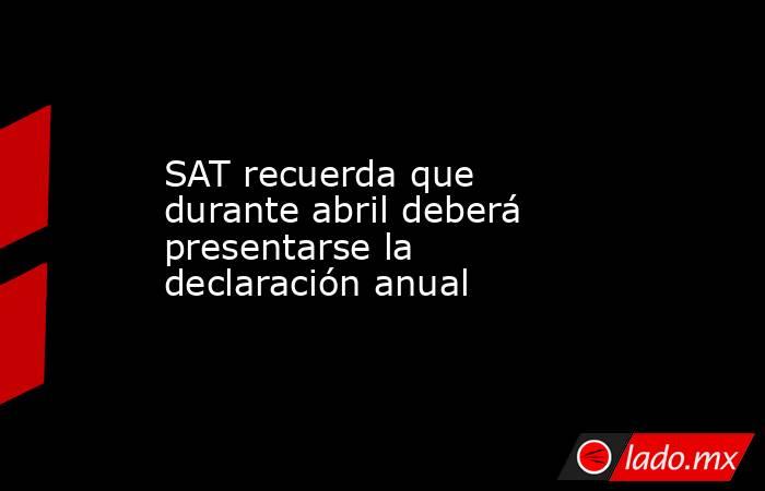 El Servicio de Administración Tributaria (SAT) recuerda a los contribuyentes que del 1º al 30 de abril es el períodoLa entrada SAT recuerda que durante abril deberá presentarse la declaración anual aparece primero en NBCS Noticias.