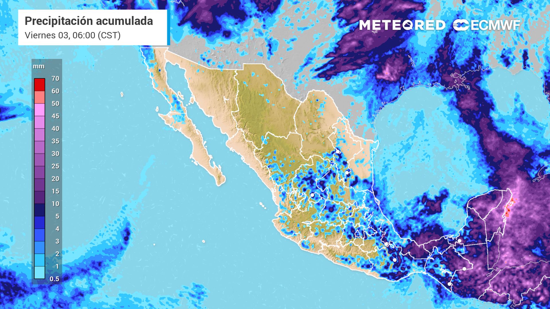 Así mismo, se esperan chubascos y tormentas fuertes en los estados de Oaxaca, Veracruz, Tabasco, Campeche, Yucatán y Quintana Roo.