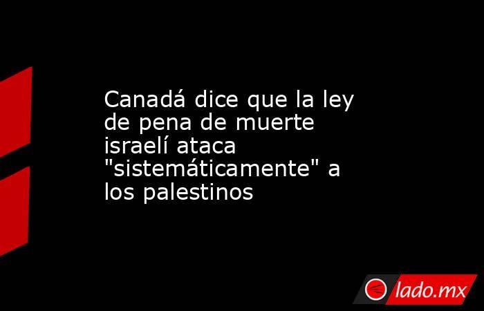 Toronto (Canadá), 31 mar (EFE).- Canadá afirmó este martes que la nueva ley israelí que permite castigar con la pena de muerte a los palestinos de Cisjordania es "discriminatoria" y "de forma sistemática ataca" a los habitantes de los territorios ocupados por Israel.