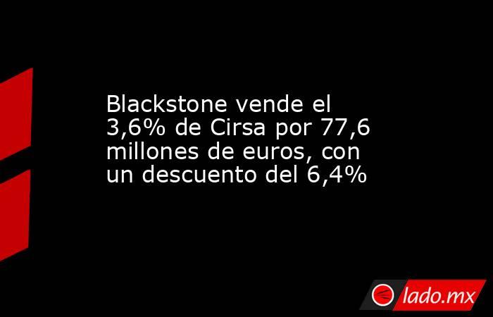 LHMC Midco, propiedad de fondos asesorados por entidades controladas por Blackstone, ha vendido el 3,6% del capital social de Cirsa por 77,64 millones de euros, a razón de 12,75 euros por acción, cifra que representa un descuento de casi el 6,4% respecto al precio al que cerraron este martes las acciones de la compañía catalana (13,62 euros).