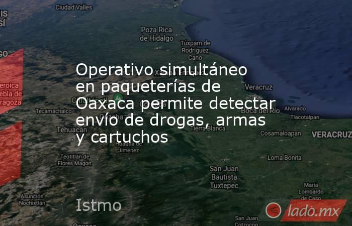 La Fiscalía General del Estado de Oaxaca (FGEO) junto con el Gabinete de Seguridad realizaron un operativo simultáneo en empresas de paquetería ubicadas en cinco regiones de la entidad, logrando resultados positivos con el aseguramiento de drogas, armas y cartuchos.