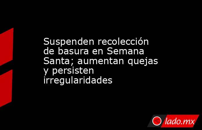 - El Ayuntamiento informó que el próximo viernes 03 de abril suspenderá el servicio de recolección de basura en los tres turnos con motivo de Semana Santa, reanudando hasta el sábado.