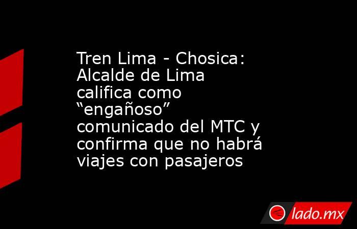 El alcalde de Lima, Renzo Reggiardo, calificó como engañoso el comunicado emitido por el Ministerio de Transportes y Comunicaciones (MTC) sobre el inicio de operaciones del tren Lima–Chosica. Además, exhortó al titular del sector, Aldo Prieto, a responder si se otorgará el permiso para trasladar los coches y locomotoras desde el patio de maniobras en Chosica hasta el Centro de Lima.