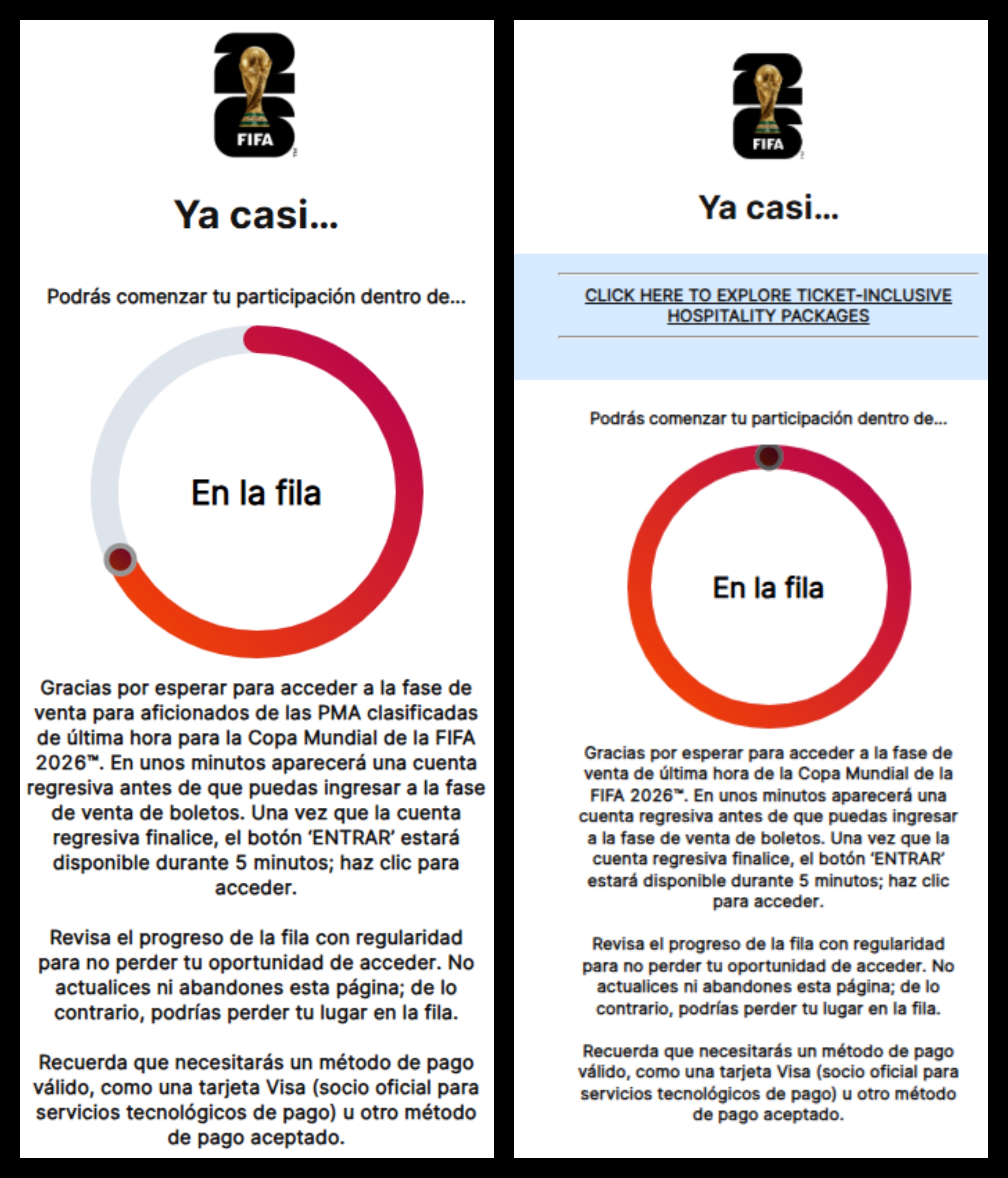 Las personas interesadas podrán consultar los partidos y categorías disponibles, así como las localidades específicas para elegir. Los boletos ofrecidos pertenecen a Hospitality, con una experiencia prémium y otra clasificación que no es mencionada, debido a la alta demanda de la página de la FIFA. De acuerdo con la organización, estas entradas estarán disponibles desde el 1 de abril bajo un nuevo formato de mayor inmediatez en el proceso de compra por orden de solicitud y sujeto a disponibilidad. En la fila virtual, se menciona que iniciará una cuenta regresiva y una vez finalizado, se habilitará un botón de “ENTRAR”, disponible solo por cinco minutos, para realizar la compra. La FIFA sugiere revisar constantemente el progreso de la fila, para evitar perder el lugar y, con ello, la oportunidad de comprar los boletos . Una vez que entre, es necesario tener preparado un método de pago válido aceptado, como una tarjeta Visa. A partir del jueves 2 de abril , el sitio oficial habilitará la función de Mercado de Intercambio/Reventa para que los titulares que cumplan con los criterios de la organización, puedan v ender sus entradas de manera segura . La intención es que las personas que ya no tengan la posibilidad de acudir al torneo, puedan realizar la transacción de manera autorizada. La disponibilidad de este servicio depende de los reglamentos locales y federales, En México, será habilitado desde las 9:00 horas del 2 de abril.