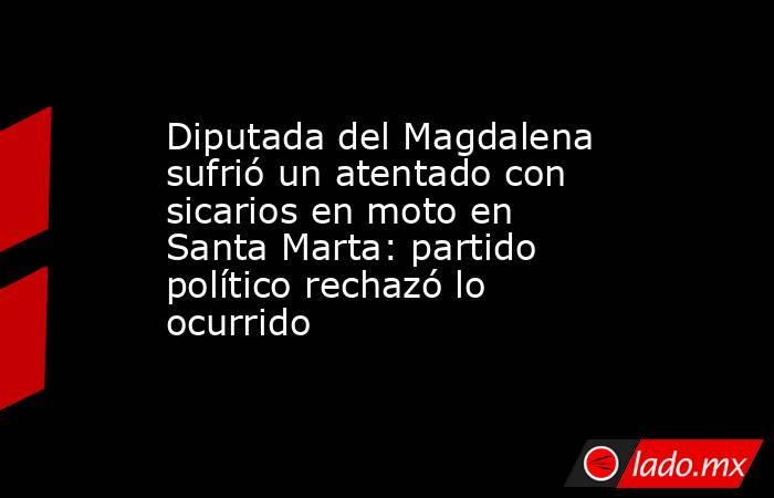 La diputada del Magdalena por el partido Alianza Verde, Rosita Jiménez, fue víctima de un ataque sicarial mientras se desplazaba en su vehículo blindado por la troncal del Caribe, en inmediaciones de Santa Marta (norte de Colombia).