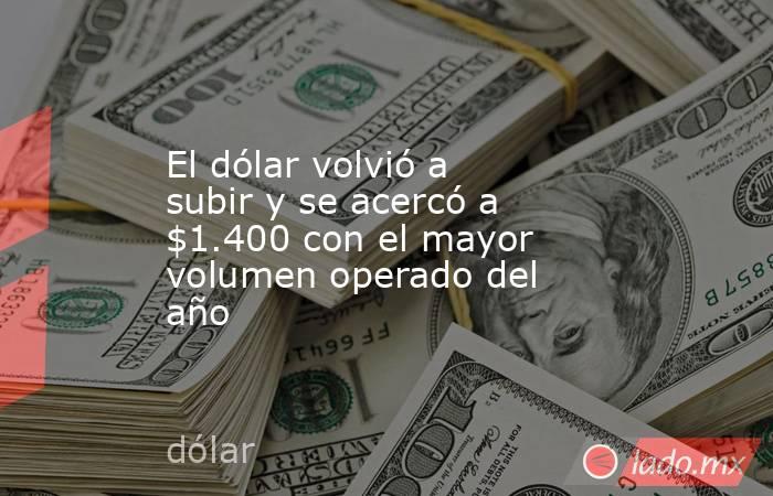 Pese a la amplia oferta privada, el dólar mayorista negoció con una suba de 12 pesos o 0,9%, a $1.394, el precio más alto desde el 19 de marzo. En la semana el tipo de cambio oficial ganó $11,50 o 0,8%, aunque desde el arranque del año experimenta un descenso de 61 pesos o 4,2 por ciento.
