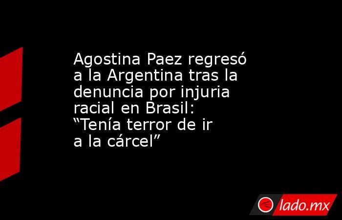 Después de más de dos meses retenida por las autoridades de Brasil a raíz de una causa por injuria racial, Agostina Páez, abogada argentina, se encuentra nuevamente con su familia en Buenos Aires, dando fin a su calvario en Río de Janeiro.
