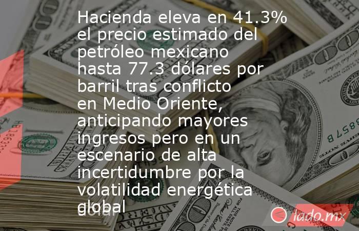 La Secretaría de Hacienda y Crédito Público incrementó en 41.3 por ciento su estimación del precio del crudo mexicano para 2026, al ubicarlo en 77.3 dólares por barril, frente a los 54.7 dólares aprobados previamente en el Paquete Económico.