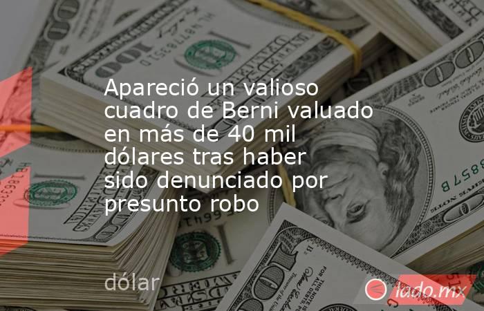 Hallaron un valioso cuadro que había desaparecido del artista argentino Antonio Berni. El robo fue denunciado en la zona norte de Córdoba, presuntamente dentro de una galería a principios de marzo. Tras varias semanas de conocerse el caso, una mujer apareció con la obra que está valuada en aproximadamente en 40 mil dólares.