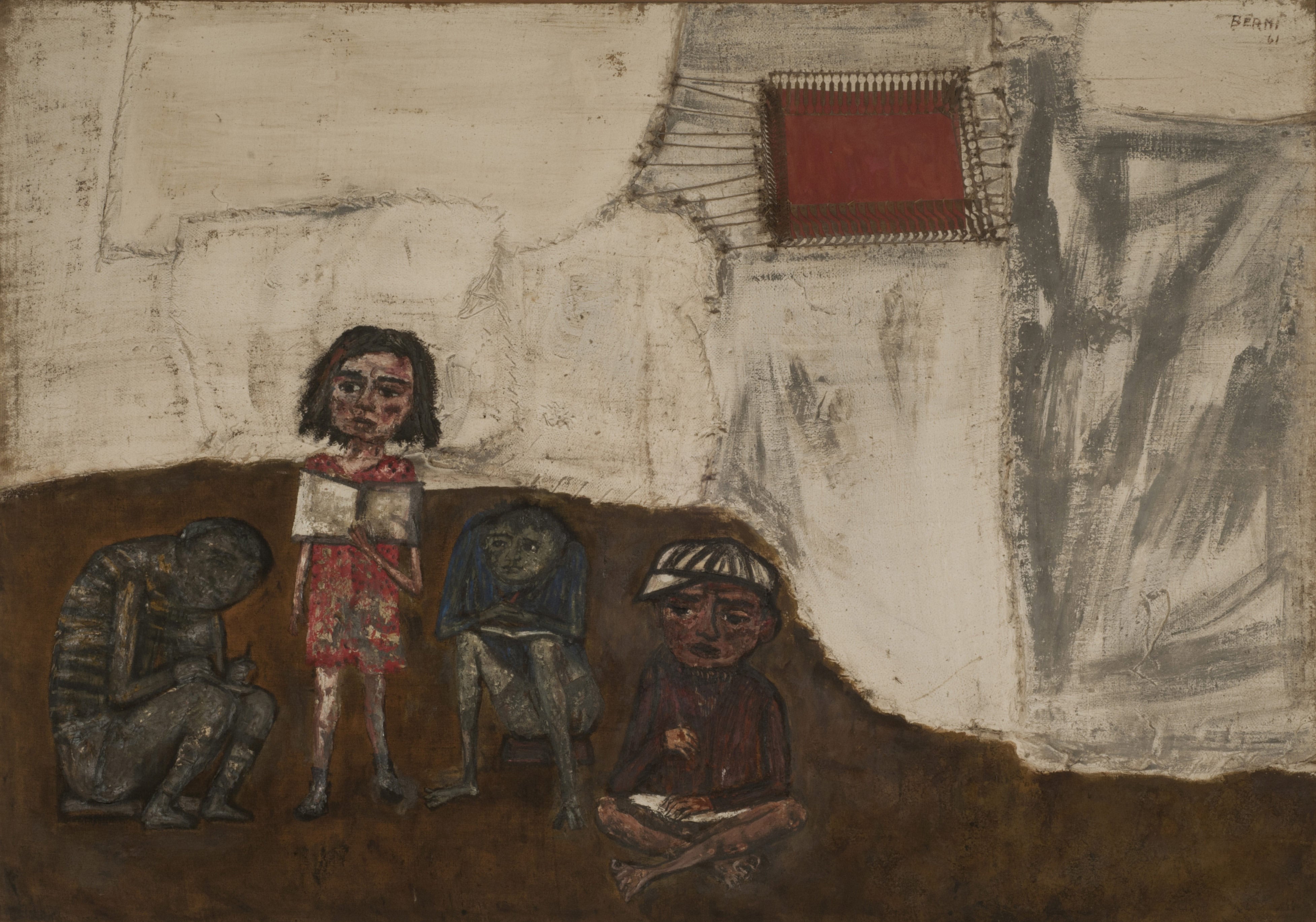 La obra de Berni, pone el foco en la niñez y la educación en contextos adversos. En pinturas como “Escuelita rural” (1956) o “Juanito Laguna aprende a leer” (1961), donde el artista retrató el esfuerzo cotidiano de los niños para acceder al conocimiento en zonas rurales y barrios periféricos. Berni utilizó materiales reciclados y objetos urbanos en sus collages para reforzar su mensaje social. Estas escenas mantienen actualidad porque evidencian los desafíos educativos en sectores postergados.